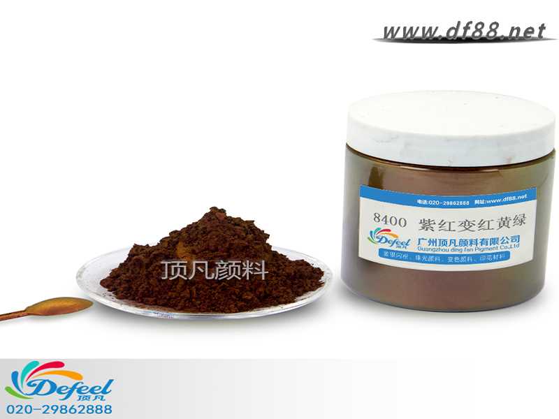 8400 紫紅變紅黃綠變色龍粉可應(yīng)用于涂料、油墨、塑料各產(chǎn)業(yè),產(chǎn)品之設(shè)計(jì)大多以室內(nèi)(無(wú)紫外光之環(huán)境)與室外(有紫外光之環(huán)境)有顏色變化為訴求。
