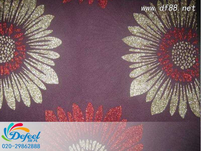 在用金銀粉進行印花時,我們通常使用環保型金蔥粉水性膠水,這種膠水牢度好,不易脫落,光澤好,透明度高,不影響金銀粉光澤,耐水洗,不粘手,抗氧化性能好,不易變色,不塞網,易操作。適應范圍適用于棉紡,棉紡紡織物的金銀粉,金銀片、五彩粉、閃光粉、閃光片、聚晶粉、銀光粉、金蔥亮片、銀蔥亮片、金蔥長條、高溫鐳射片、珍珠粉、七彩片的印花。