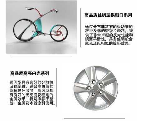 粉末涂料、油墨、塑膠色母粒、印刷、仿金紙、仿金卡、金膠片、紡織品,但在水性漆及帶酸堿的油漆中使用會氧化變黑。不推薦用于要求耐酸堿及與雨水結(jié)合的場合。